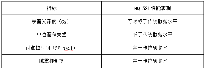 无硝酸、无黄烟:HQ-521不含硝酸成分,反应过程中无氮氧化物产生,彻底解决了酸抛过程中NOₓ废气排放问题。