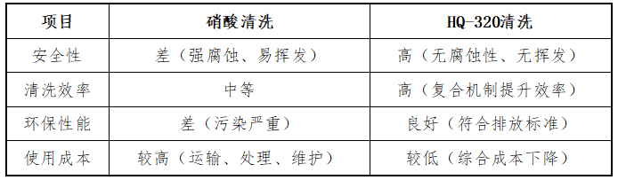 针对硝酸清洗在安全、环保、设备腐蚀等方面的弊端,合肥华清高科研发的 HQ-320环保清洗剂通过多维度技术创新,实现对硝酸清洗的全面替代,其核心突破如下: