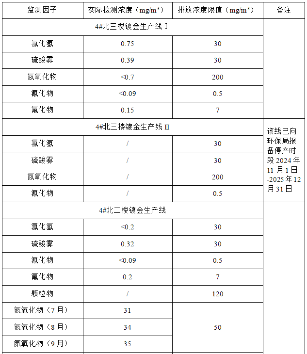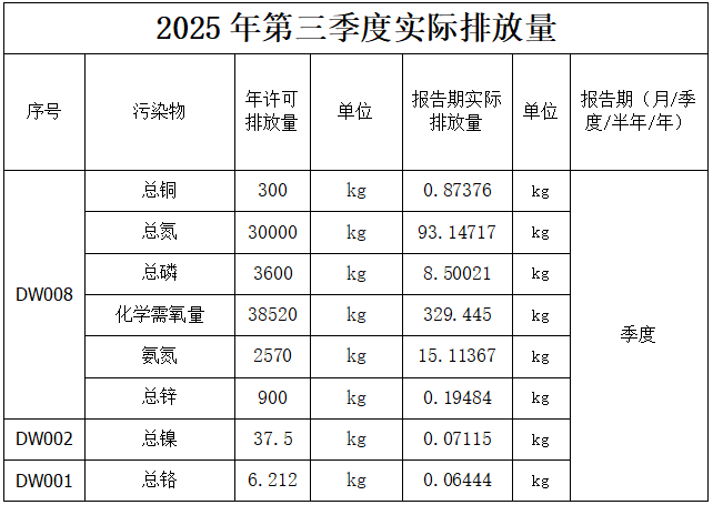 2025年第三季度废气排放信息