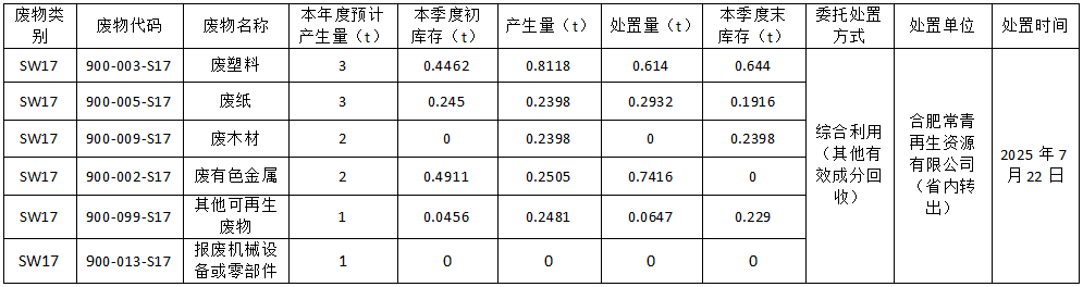 2025第三季度危险废物处置信息