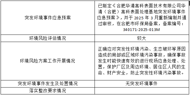 合肥华清高科表面技术股份有限公司 2025年第三季度信息公开表