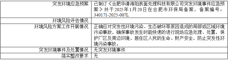 合肥华清海阳表面处理科技有限公司2025年第3季度信息公开表