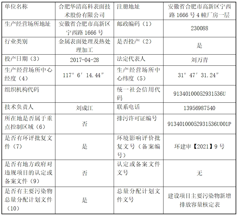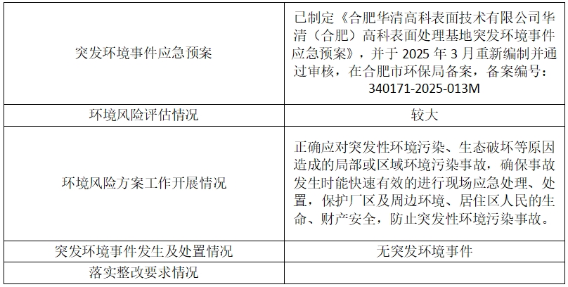 合肥华清高科表面技术股份有限公司 2025年第二季度信息公开表