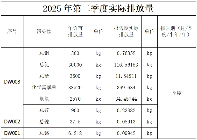 2025年第二季度废气排放信息