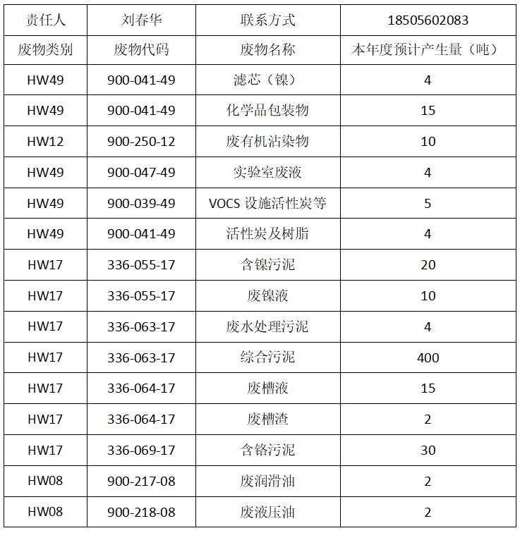 2025年度危险废物预计产生量信息
