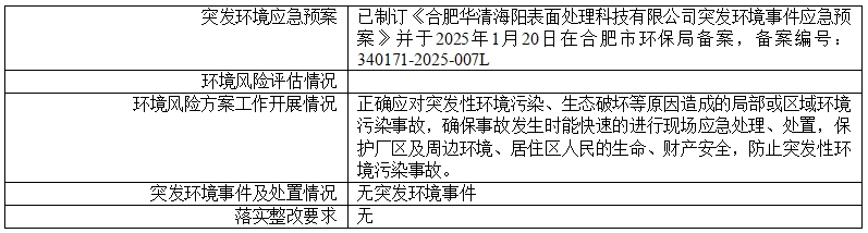 合肥华清海阳表面处理科技有限公司2025年第2季度信息公开表