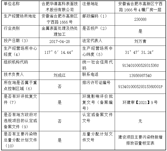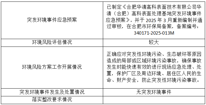 合肥华清高科表面技术股份有限公司 2025年第四季度信息公开表